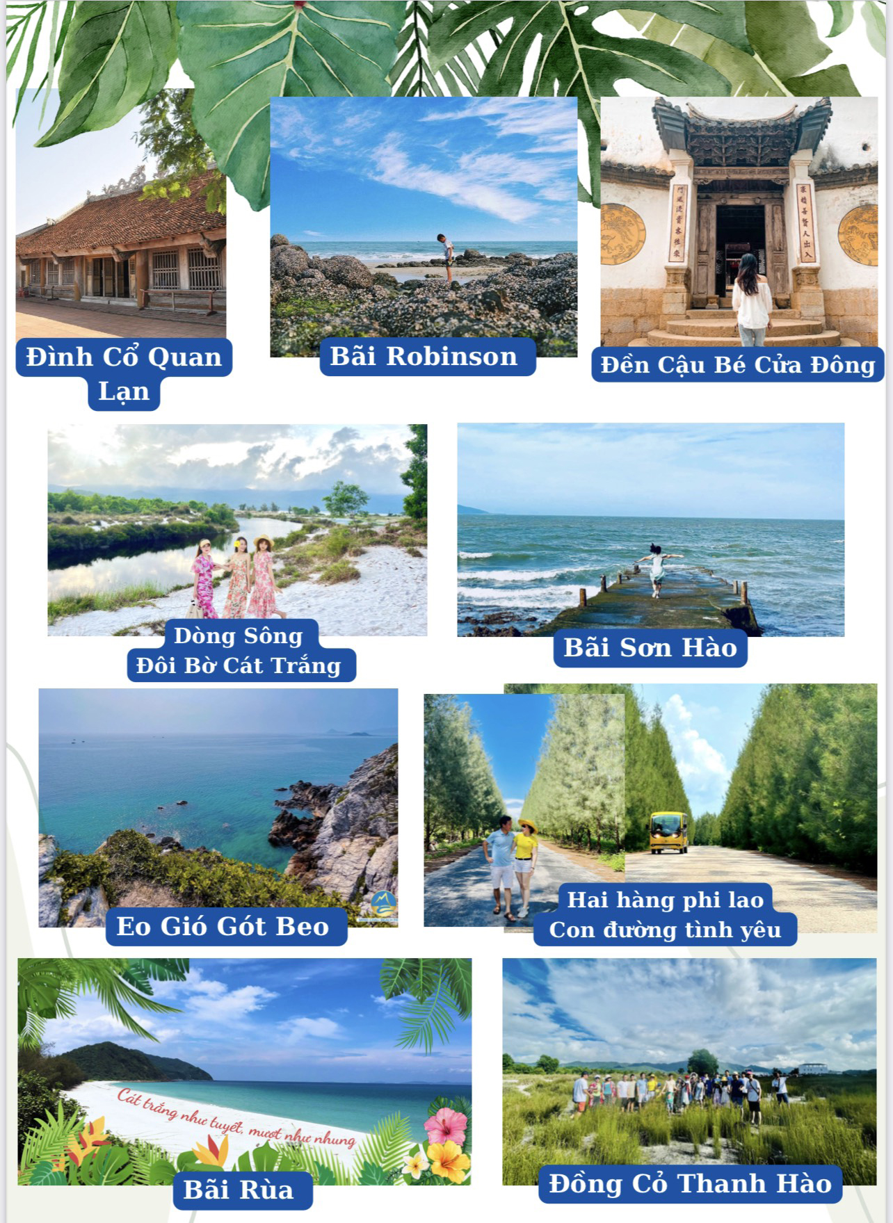Tư vấn cung cấp dịch vụ du lịch tham quan Đảo Minh Châu - Quan Lạn uy tín và chất lượng. Các dịch vụ gồm: - Xe khách đón tiễn 16- 29 - 35 - 45 chỗ - Tàu cao tốc khứ hồi 30 -100 chỗ - Xe điện đón tiễn, thăm quan trên đảo - Thuê Loa Điện, Loa Kéo các loại - Teambuilding bãi biển, đốt lửa trại và các hoạt động giải trí khác - Trải nghiệm làm ngư dân: Câu mực, câu cá, bắt sá sùng, cào ngao, bắt còng gió...